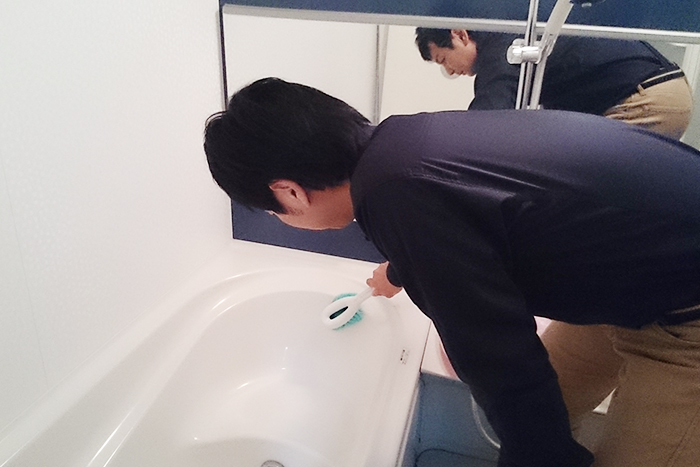 浴槽(バスタブ)、蛇口・シャワー部、エプロン内(簡単に外せる物は外しますが、困難な物は外さずの作業となります)、ドア(両面)・照明器具、換気扇・換気口、排水口(排水溝)、天井・壁・床、風呂釜洗浄